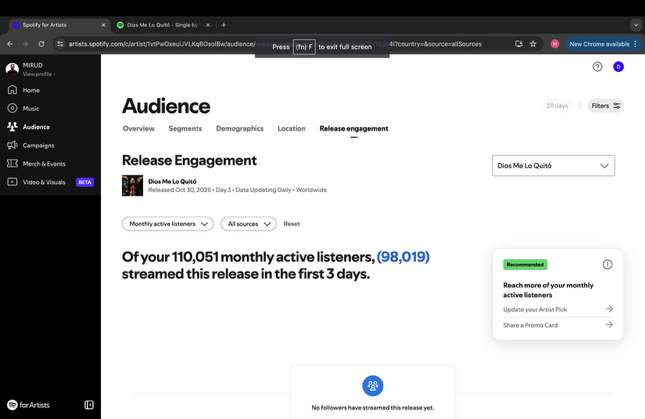LA NACIóN, VENEZUELA, November 2, 2025 /EINPresswire.com/ -- Following the success of his Portuguese album Entre os Mundos and its Spanish counterpart Entre Mundos, both of which soared into the Top 10 charts across Latin America, MIRUD released his new bachata single “Dios Me Lo Quitó.” Within an hour of its release, the song has already accumulated 400,000 streams across platforms.